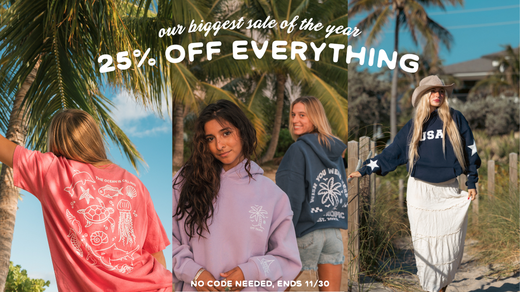 I like to describe Off Tropic as coastal cowgirl inspired! Everything is designed to bring a bit of country to the coast. Our apparel is not only created by the highest quality, but it’s built to last all your own memories and adventures!